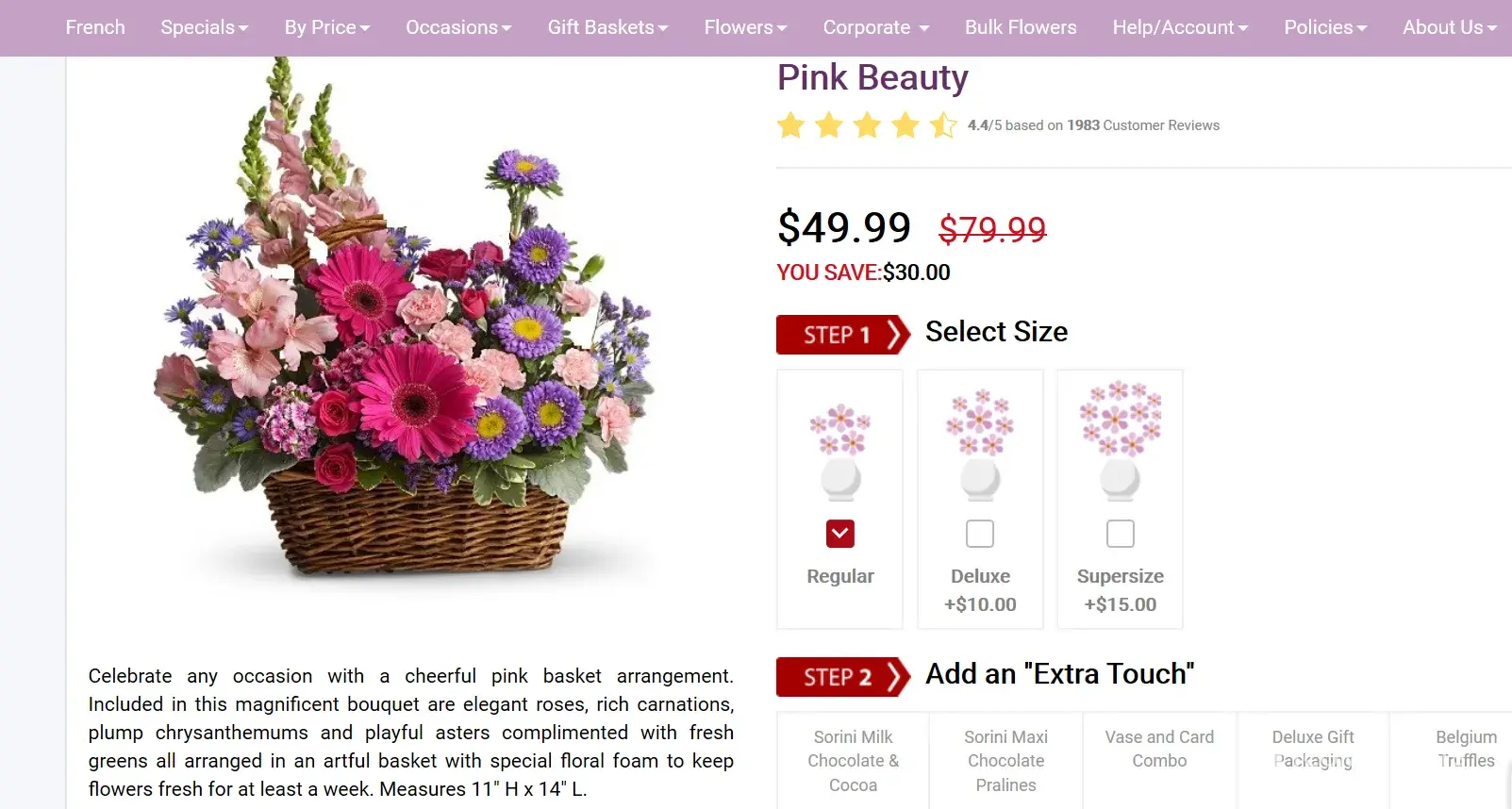 I ordered a basket of flowers called Pink Beauty. They were for my mother who is 92 and lives in a senior's home. My mother received a bouquet of Dead Flowers. How heartbreaking. I contacted the company and I was offered $20 off my next order. I refused this offer and contacted the company a second time and this time was offered a 15% discount on my next order. Why would I spend more money for dead flowers. The money isn't the real issue, instead it's how do you compensate sending dead flowers to a senior.
