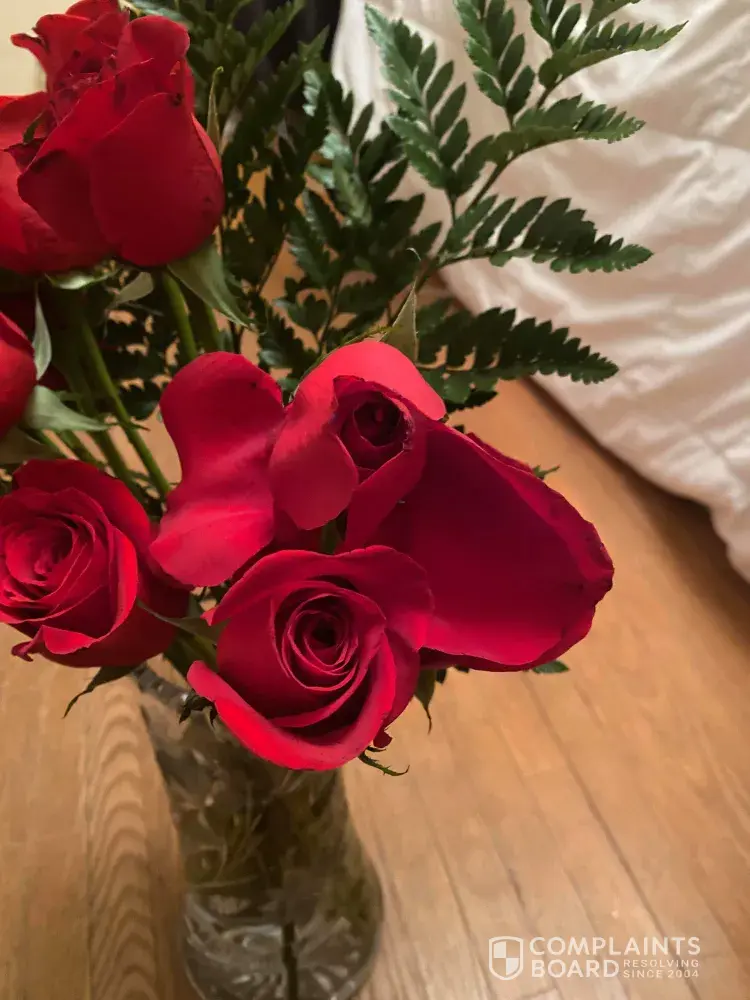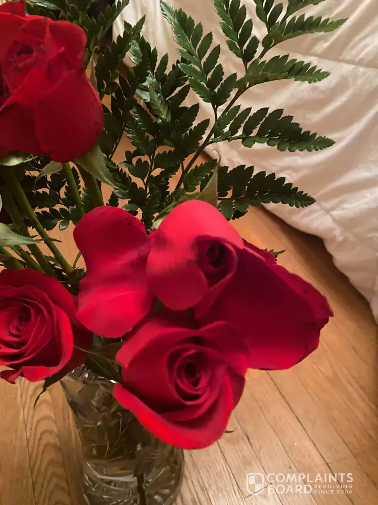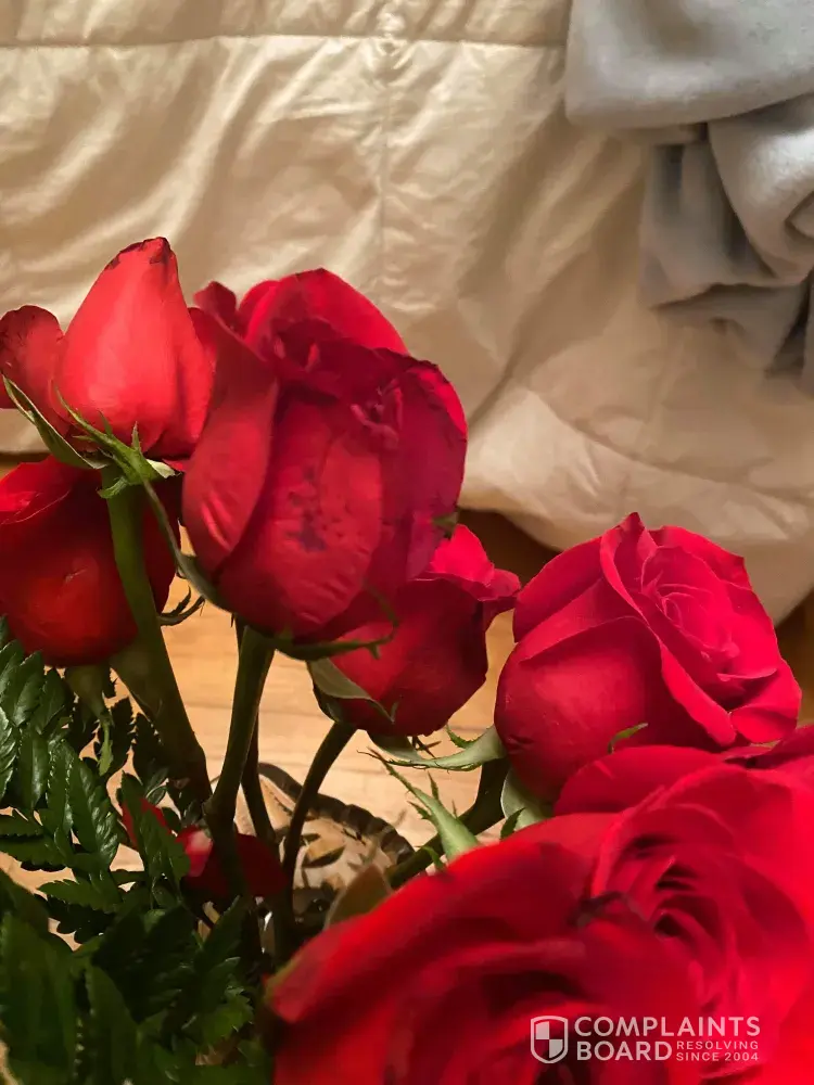 Roses arrived for my birthday today in terrible condition. They arrived after 3pm and were left on step. The driver did not have the decency to ring the doorbell. Rose petals are black, wilting and falling off the stems. Best part of the whole experience was opening up the box. Sadly I feel terrible that my sister paid so much money for such substandard, crappy flowers. This is the second time our family has used this service. Will never use again and never recommend. I posted a thank you on facebook but so embarrassed cause the roses are in such terrible condition. Will never use again!