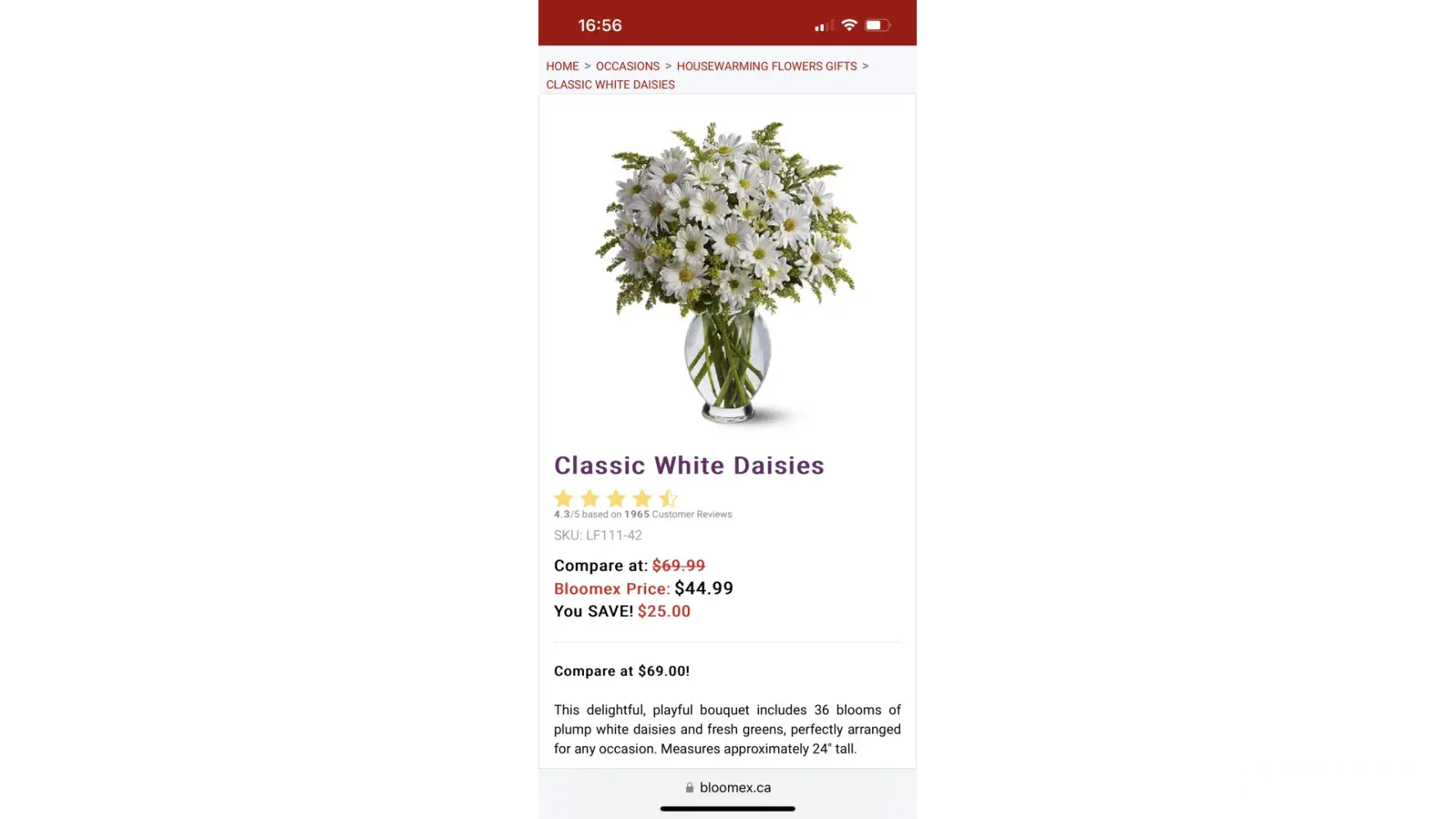 It took five attempts before I received any response from Bloomex and they refused to refund my money, instead offering credit that I would presumably use for more bad service and rubbish flowers at some future date.