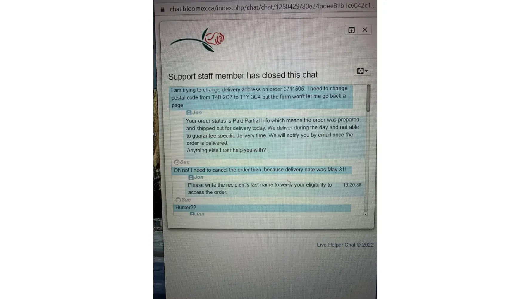 Tuesday 21/6/22 and i told them i wanted them to go to her on wednesday 22/6/22 but they did not go until Thursday 23/6/22 also they were not the ones i had order the one on the left is what i wanted and the one on the right is what my sister got now they are just about dead i am not very happy and i want my money back i rang Blooex up on friday and they were going to send me a email but i have got nothing back from them at all i paid $54.90 if i do not get my money back i am going to go to consumer affair vic they have until this Friday to give me my back my code number 1952209 i will be waiting to hear from you