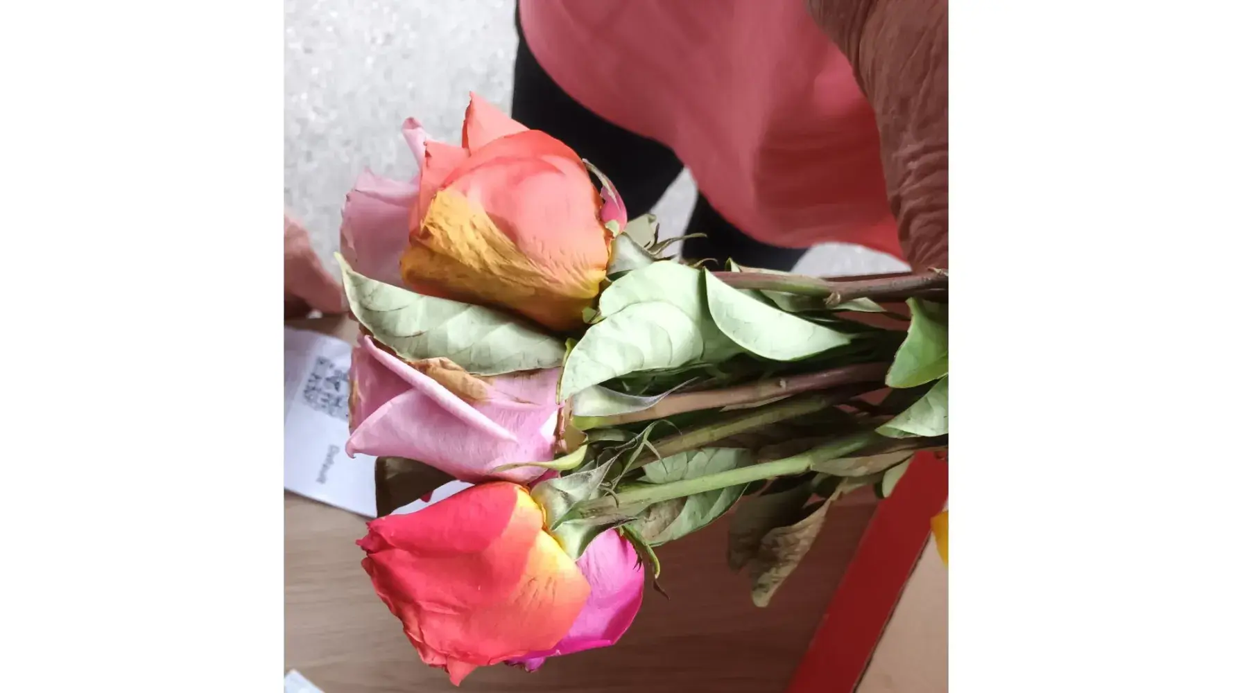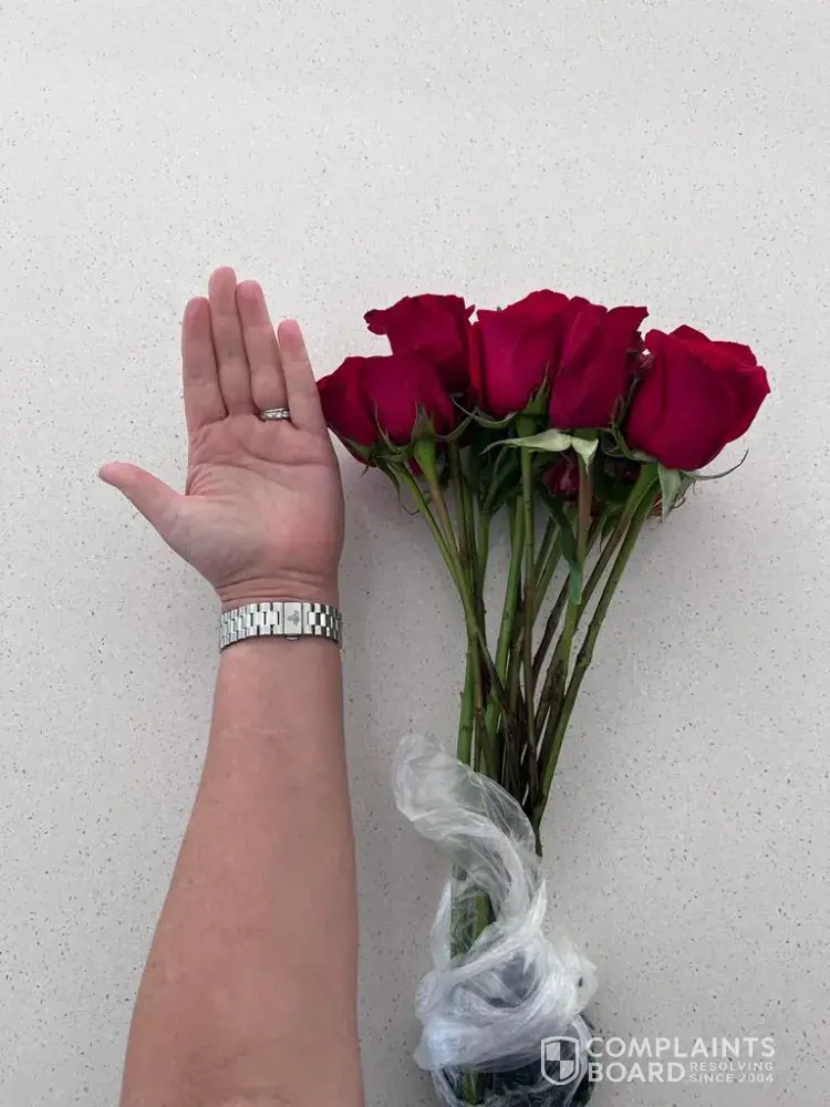The flowers only arrived there today, 11/10/2022 in a red box with the delivery docket being bloom-[protected]. Upon opening the box, the roses were not the half dozen red roses i ordered but instead multicoloured roses and were basically dead. Please see image attached for reference.