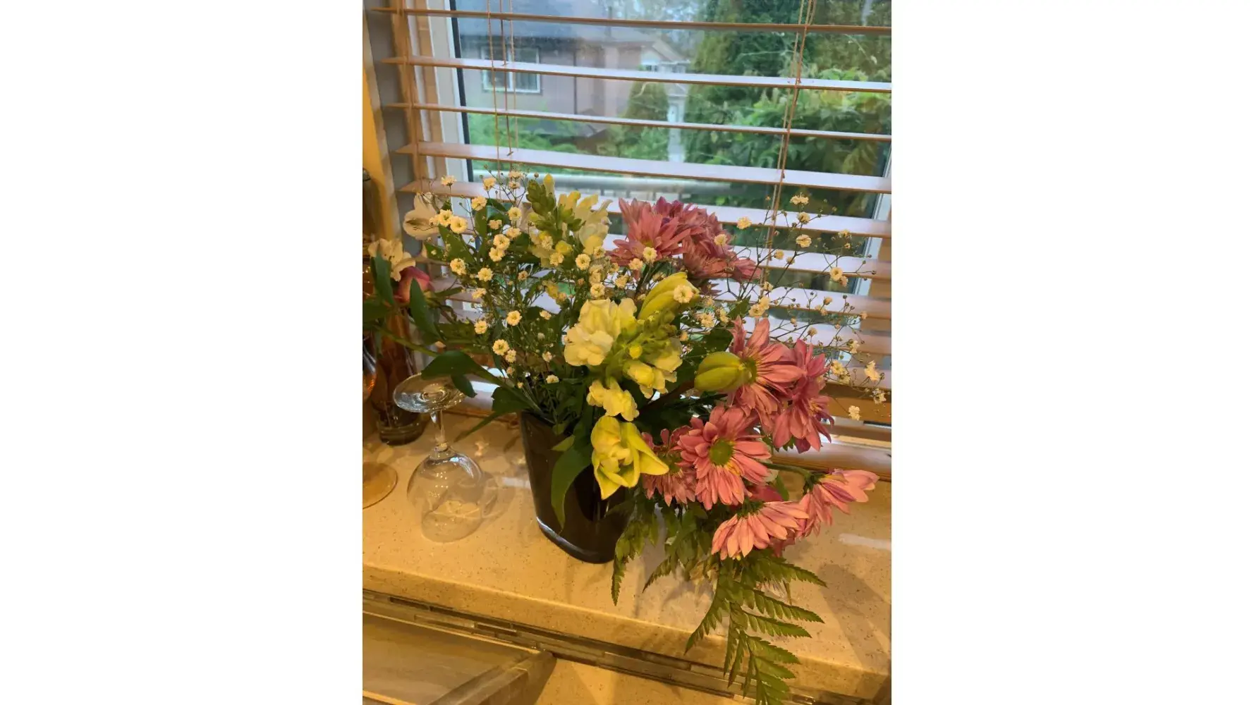 I sent an email with the shot of the flowers to Bloomex and they wrote back the next day asking for more photos. I asked my son to send me more photos but he said that they were dead by the next day and had dropped most of the petals so they threw them out.