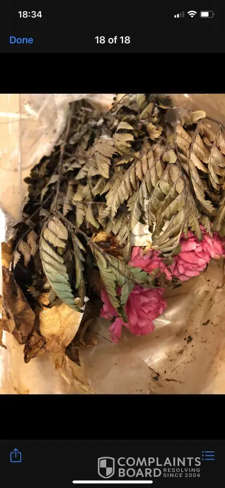 The flowers were sent as a gift for condolences 2/7/21. The flowers arrived 3 weeks later- DEAD OBVIOUSLY, please see enclosed photos.