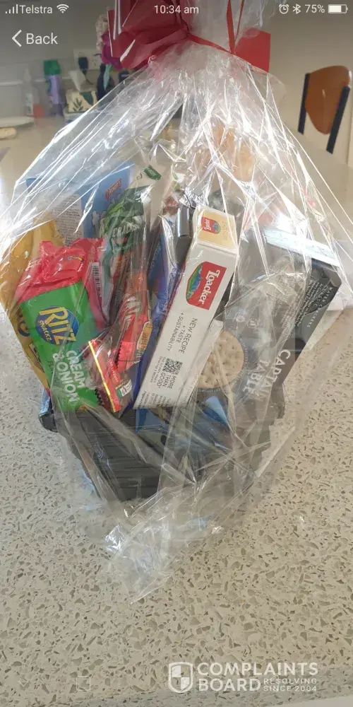 Well needless to say the gift hamper that was sent out to my mother as an apology for sending dead flowers that was meant to be the value of $144 was a total value of $41.55. See attached the flowers my mum was meant to receive and the dead flowers she got instead also attached is a photo of the gourmet hamper she was meant to receive however as you can see this was not what she got.