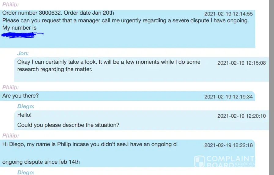11. I have tried literally about 17 times where I've typed asking if a manager will call me and to ask them to call me. I've had no luck. Obviously, your managers don't give a damn about complaints. I would like this matter brought to the attention of your Directors, . In fact, your customer service agents have ignored me online leaving me hanging for over an hour in this case.