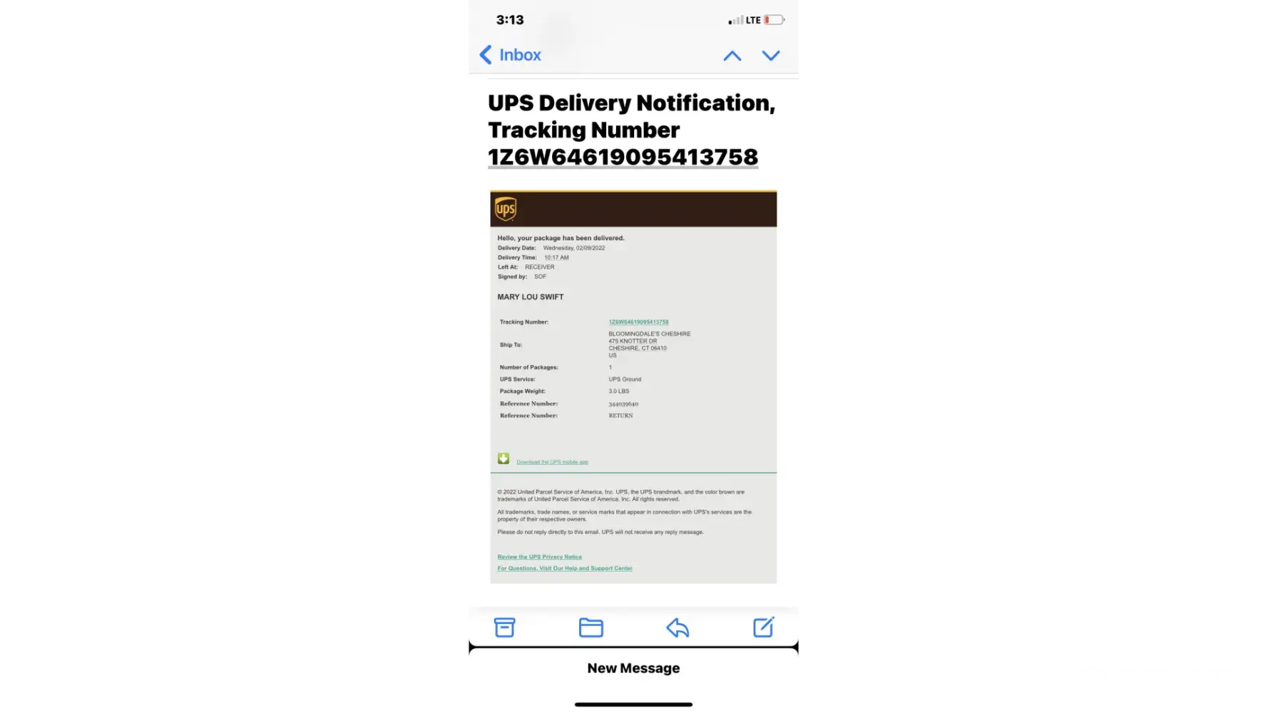 I returned a Gucci hand bag meant for Gucci to Bloomingdales by mistake that was sent by UPS on 1/27/22