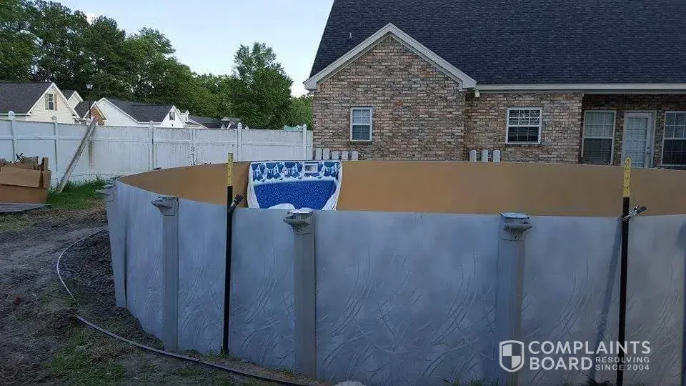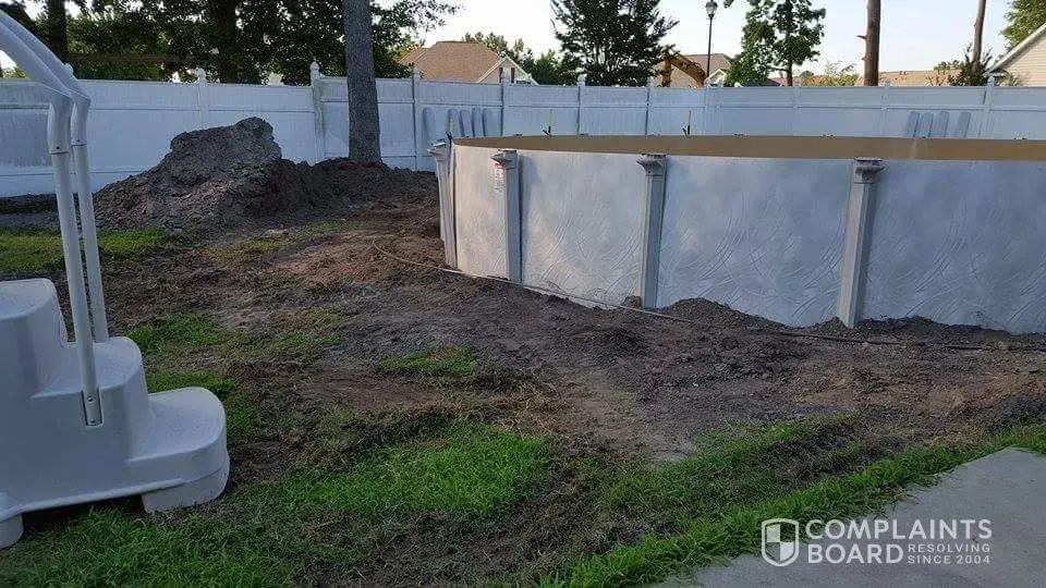 Everything appeared to go well the following week. The contractor arrived a day early. He and his crew reported that they were going to take down part of the fence to get a small tractor in the back yard which would cost an additional $150 after we just paid him 4000 to set the pool up. We took a deep breath and a leap of faith and paid him to set it up, take apart the fence, and put it back together. The fence is now broken because they did not put the gate back correctly. We will have to hire someone to fix the latch, gate, and remove pieces of cement that was left in our backyard. They also carved dirt to level the yard for the pool. They told me that I would have to disperse the dirt around the yard. It was three piles 6 feet high. I hired two different people, $200 dollars later to level the three piles of dirt. I asked the contractor to put the trash in the front yard so that the trash men would pick them up. They left a huge mess after the trash men left. I packed the car up and went to the local dumpster two times to get rid of boxes, plastic, tubing, and lining. The contractor gave false information about the pool. He reported to keep the filter on 4 hours per day whereas, the website reports to keep it on for 12 hours per day.