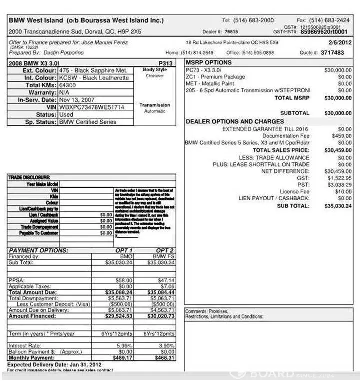 During the sales process of a BMW X3 2008 ($35, 000) BMW made a written quote stating that BMW will provide an dextended warrranty of the vehicle until 2016. They provided twoo documents to this effect (the quote and the options doc).