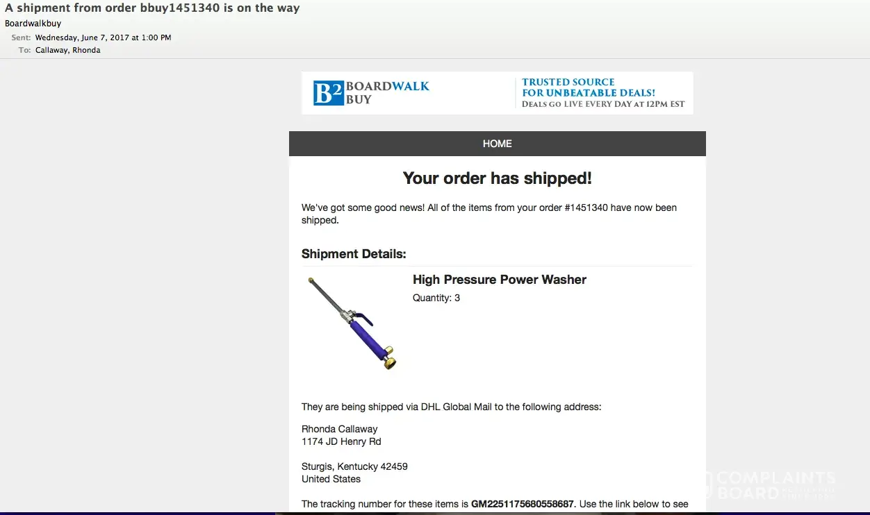 On June 7th I received an email that my order of (3 pressure hose attachments) had been shipped and to arrive prior to Fathers Day. I have yet to receive them and I submitted a request for an explanation on Fathers Day and I have yet to hear from anyone. I have uploaded a photo of the email stating that my order had been shipped on June 7, 2017. I am concerned that I have not been contacted after I sent information on June 18, 2017 requesting information why I have not received my order as they were Fathers Day gifts. I have utilized the tracking number and the last date it gives is June 12th in St. Louis.