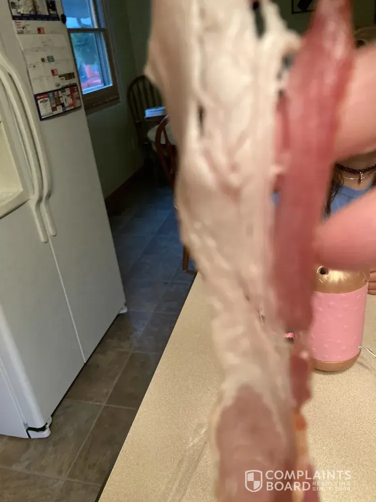 It was not thick fell apart when talking out of the package. I had my grandkids over they love bacon I was so disappointed at This product. I've always gone with Bob Evans sausage bacon always loved it but this time I think it was package strong. I don't know how much more that you would want me to say about this product to make sure that it is somehow result whether you give me cash back or coupon to purchase the same product again.