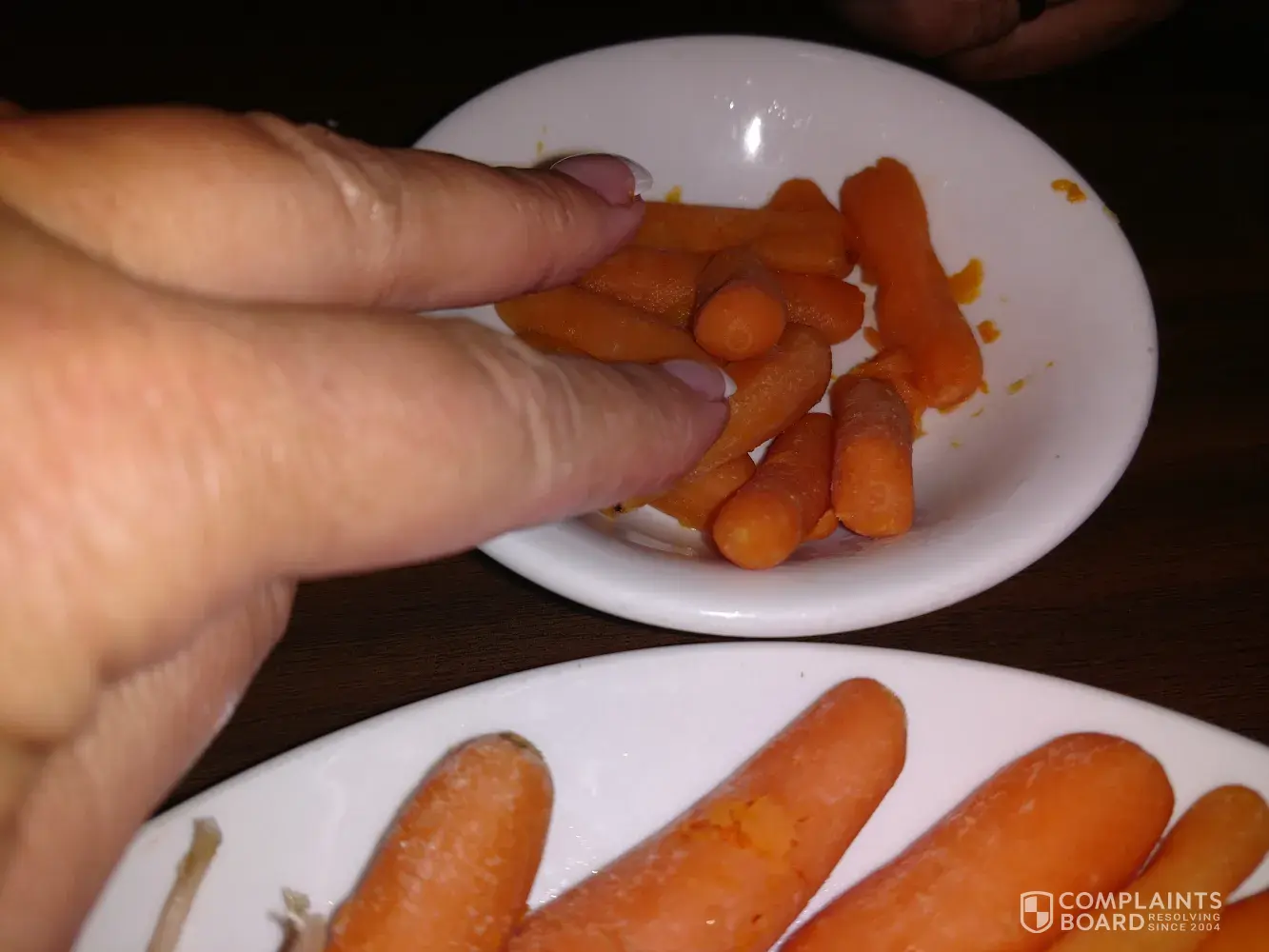 I had an absolutely perfect meal two weeks ago of fried chicken (dark) mashed potatoes and gravy with carrots and dinner rolls. Last night I ordered the same meal around 7:45 and was extremely disappointed. The only thing good about the meal was the potatoes and gravy. The chicken was over cooked so the meat, even for dark, was dry and too crunchy for skin. The carrots were old because I could see the dry lines on them but even then were under cooked. They brought me a small, and I mean child size small, bowl of carrots to try again...they were worse than the first. I took photos because I figured no one would believe me. And then the drink. My husband I both ordered strawberry lemonade which clearly shows in your photos that you can see the strawberry color or red in the drink. Both of our drinks came like cloudy water with a hint of a lemonade flavor. No strawberry. I asked about having another squirt of strawberry flavoring I and was told it already comes mixed. It was terrible. Should have never been served like that. No manager ever came over to talk to us. Was very disappointed. I worked at Bob Evans before and I would have never served that meal or drink. Will think twice about returning. Thank you for your time.