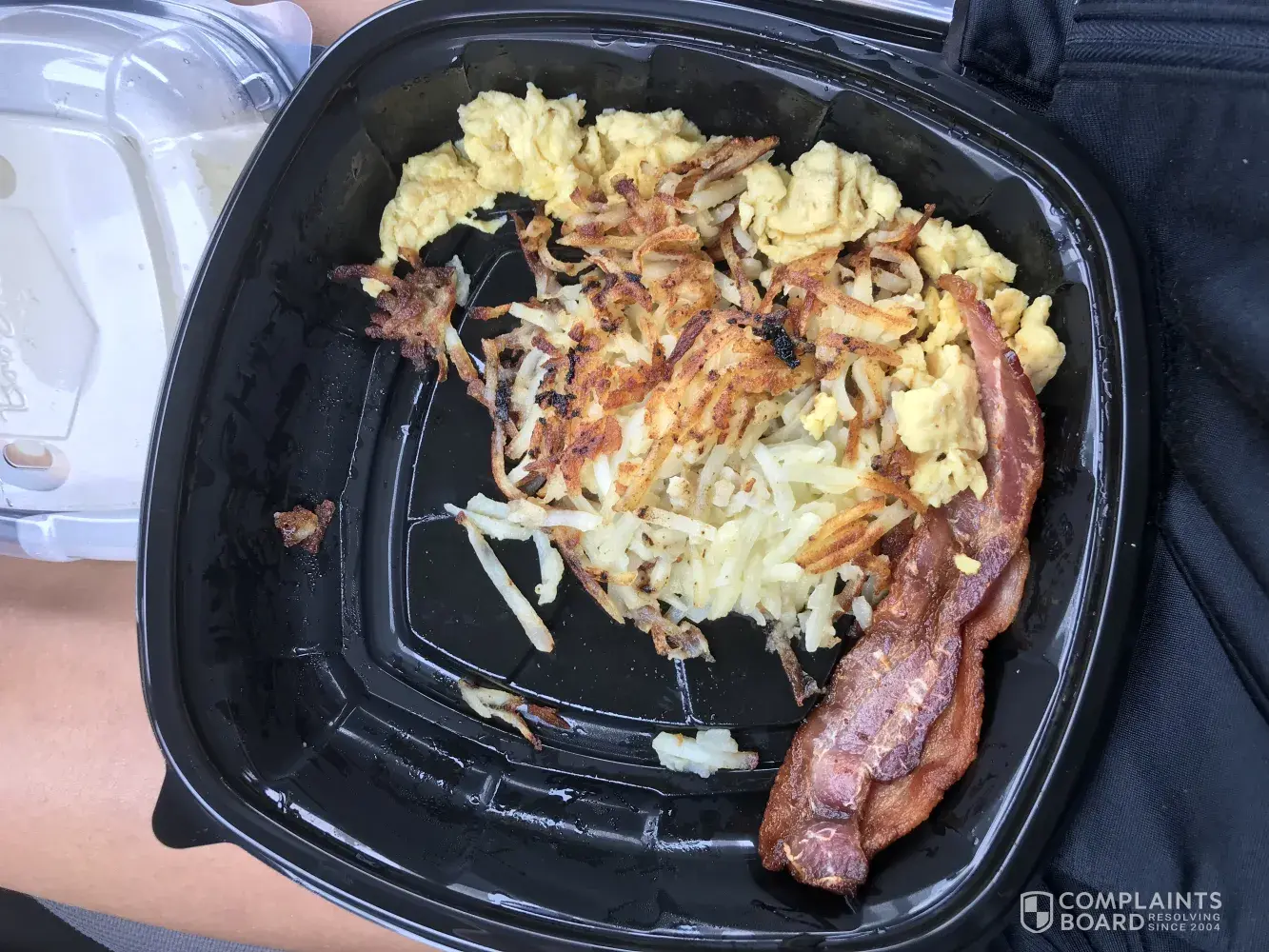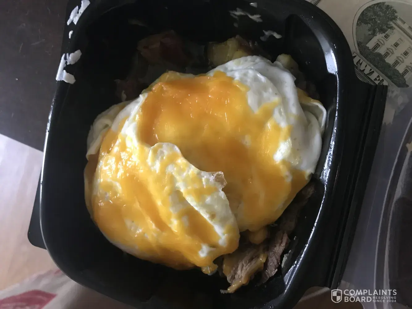 I waited 30 minutes for my food and I had to get it to go because I had somewhere to be. I get it and it doesn't look like anything ive order. There's literally 5 scrambled egg pieces.