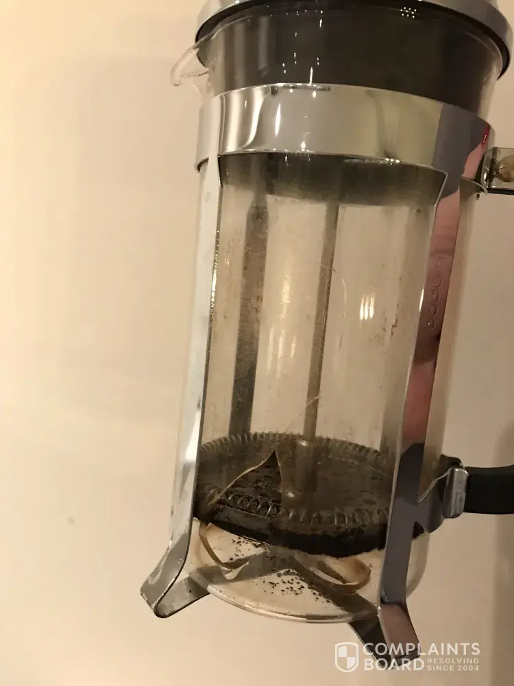 I purchased a lovely blue 3 cup coffee cafetiere from John Lewis Cambridge a couple of months ago. I am extremely disappointed with the product, having paid £15 for it when I have had £5 ones that are a much better product. No matter what coffee I use or how I use it, slowly as instructed I still have coffee grounds floating in my coffee every time! I would like my money back as soon as possible so I am able to buy a much more efficient product, so I can enjoy my coffee.