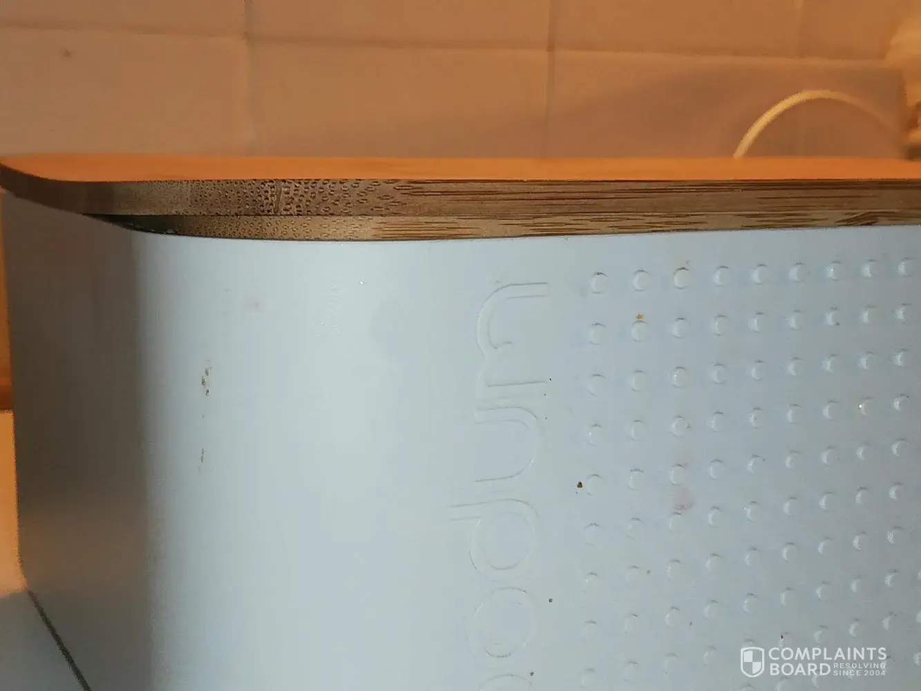 Hi, a couple of months ago I bought a Bodum bread bin from Amazon and the bamboo lid is already warped, so the bread goes dry pretty fast. I expect it should be replaced with a new one. Please find attached relevant photos.