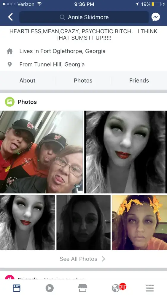 If you look at her Facebook account she is NOT very professional at all in representing BoJangles at all.