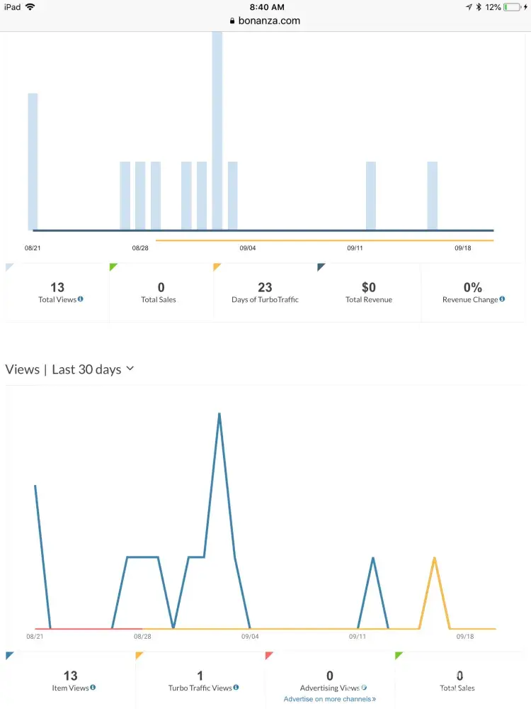 I spent $44.95 to use their "FREE TRAIL" for 30 days. My booth had 14 views on my listings thru Bonanza.com and 53 views from outside Bonanza. The outside source was other sites I had listed my items on before Bonanza. I had NO SALES.