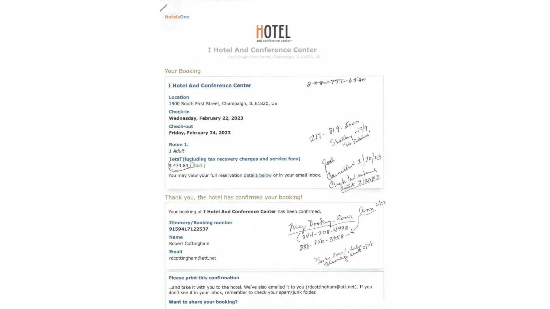 Today I see Hotelsone.com on my discover bill. I cancelled my reservation [protected]) with the I Hotel in Champaign, Illinois on 2/10/2023 for 2/22 to 2/24/2023. I have been dealing with Mybooking.com and Booking.com to try to get my prepaid $474.84 refunded to my Discover account. They want a pin code which I cannot find anywhere and cannot reach any one to retrieve or get. And they claim my reservation number is invalid. Help!