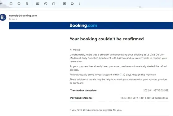 I booked for a holiday using Booking.com for the holiday that was supposed to be at The blyde (Pretoria) from the 2nd -4th December 2022. When I arrived there I called the apartment owner for unit number she responded and said she is out of the country and she has blocked all her bookings up until January 2023 therefore I need to cancel since she can’t accommodate me. I did exactly that and made Booking.com aware of the situation. All the customer service I called they said they tried to get hold of the apartment owner for confirmation and from there they will process my refund. I reached the apartment owner and she said she confirmed long time ago but to this day I didn’t get my refund and Booking.com customer helper never got back to me. I am disappointed and I have been a loyal customer to Booking.com
