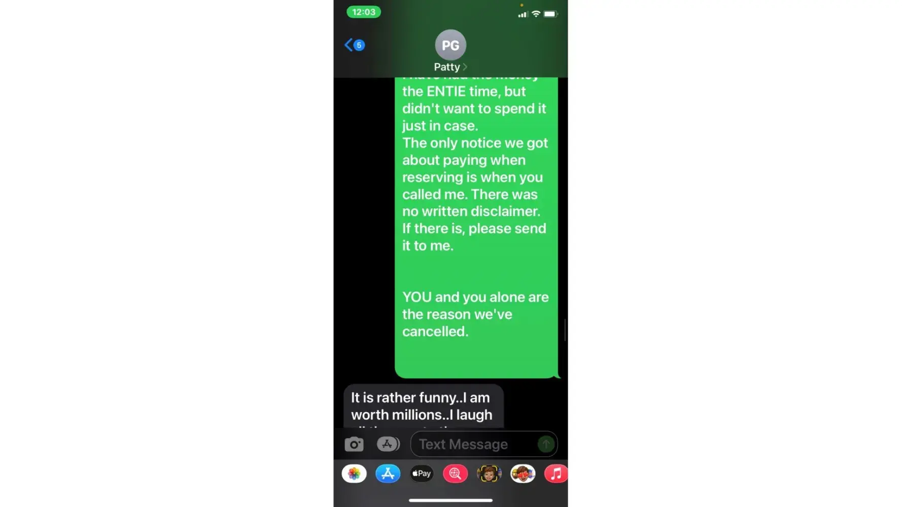 I explicitly told her that I was no longer interested in renting from them, to cancel my reservations, and the precise reasons why. "Patty" was rude in her comments, snarky, untruthful, and was trying to railroad me into paying, because she demanded it.