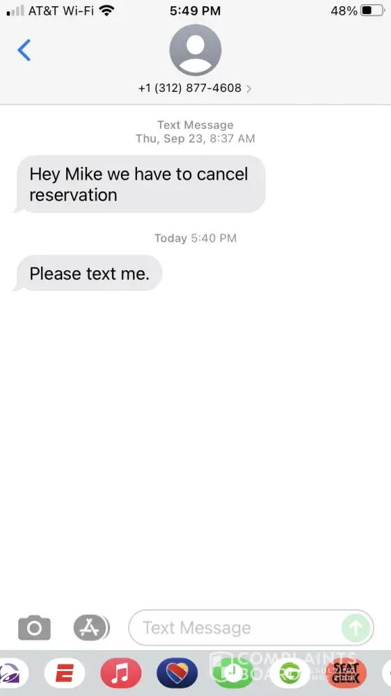 This reservation was cancelled on the same day of the reservation 9/23/21 by the owner. I have a text from him cancelling. I contacted Booking.com by phone with a complaint. I was told by Booking that they would give the owner one week to respond and the owner did not respond Booking would give me a refund. I waited 1 1/2 weeks and contacted Booking a second time. Booking told me the second time, that the owner did not respond to them. However, now Booking is saying there is nothing they can do for a refund. It appears we have been scammed by the owner of this property as well as Booking.com. This is the link to the property which is still be being advertised and offered on Booking.com https://www.booking.com/hotel/us/2-bedrooms-brand-new.html?label=gen173nr-1DCAEoggI46AdIM1gEaJ0CiAEBmAExuAEZyAEM2AED6AEB-AECiAIBqAIDuALVwPiKBsACAdICJDU0Zjc2MDIzLTViZmQtNDM2Yi04ODI1LTI1OGVlYzcwYWY4NtgCBOACAQ;sid=218e2d5f551e55b676166f6567c9388d;all_sr_blocks=712972301_335191847_2_0_0;checkin=2022-06-02;checkout=2022-06-06;dest_id=20033173;dest_type=city;dist=0;group_adults=2;group_children=0;hapos=1;highlighted_blocks=712972301_335191847_2_0_0;hpos=1;no_rooms=1;room1=A%2CA;sb_price_type=total;sr_order=popularity;sr_pri_blocks=712972301_335191847_2_0_0__41280;srepoch=1633558621;srpvid=6e019cae0d7f0128;type=total;ucfs=1tab-main