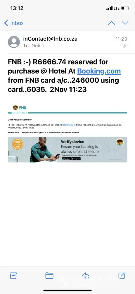 I immediately contacted Booking.Com, gave them all my details and was promised that an email would be sent to me with acknowledging my call and advising me of what to do.