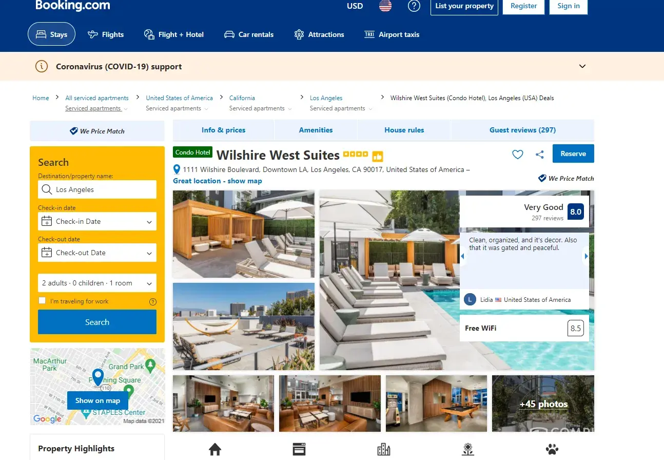 There is an account under Wilshire West Suites on booking.com that uses a different address than where the actual hotel/room is located.
