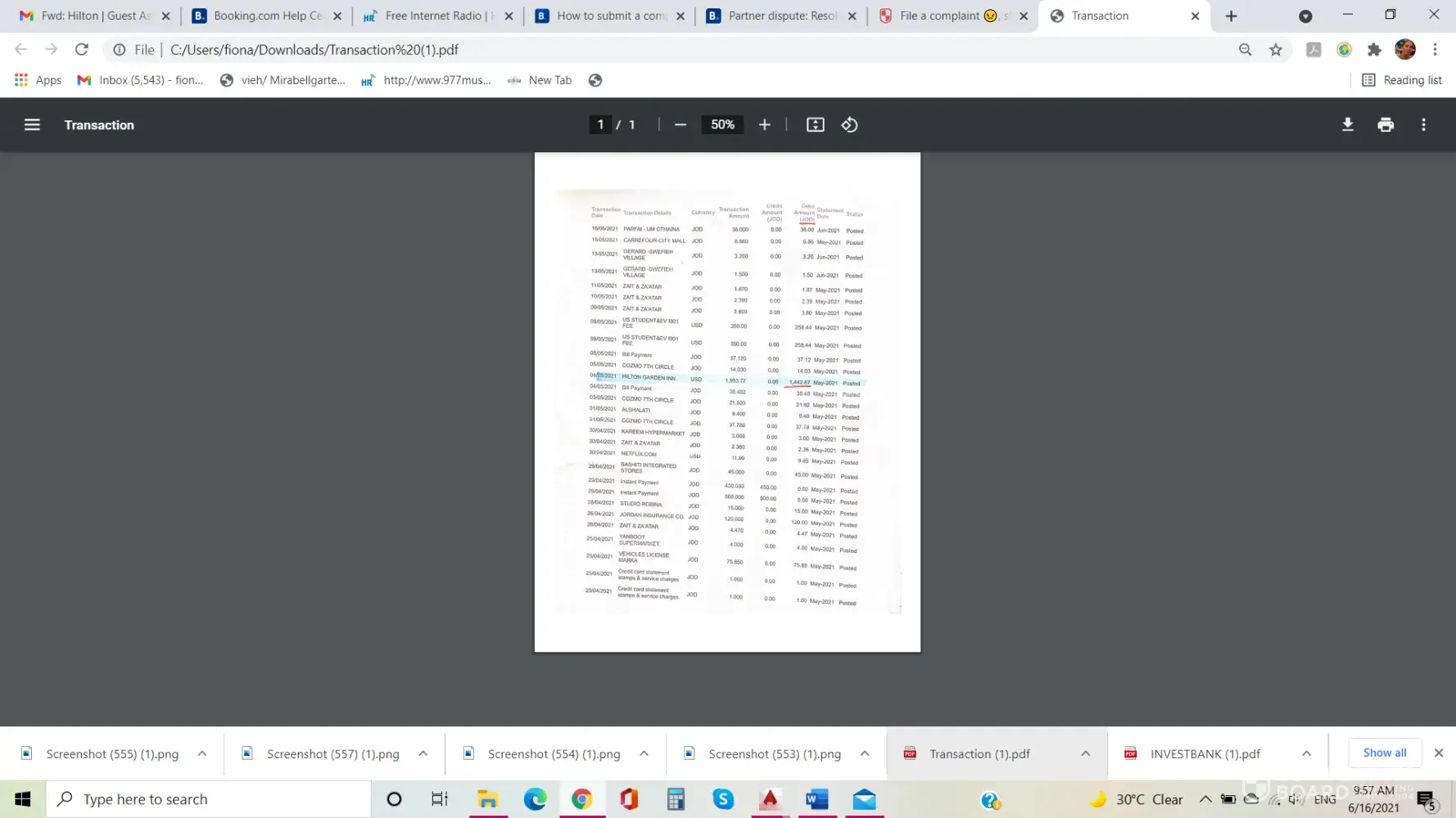 Please note I have booked on 3 May 2021 at Hilton Garden Inn South Bend -confirmation # [protected] pin code 6289 -and cancelled my booking on 5 May 2021 - FREE CANCELLATION BOOKING - the amount was drawn out from my account immediately and I had to correspond with the main Hilton customer service to be reimbursed back after my contact with the property failed to receive any attention, since the money was drawn out and returned to my account in dollars from a Jordanian Dinars account, I have suffered money value loss due to currency exchange twice - for the total amount of ( -161.590 $ equivalent of -114.73 JOD). Bank account transaction attached.