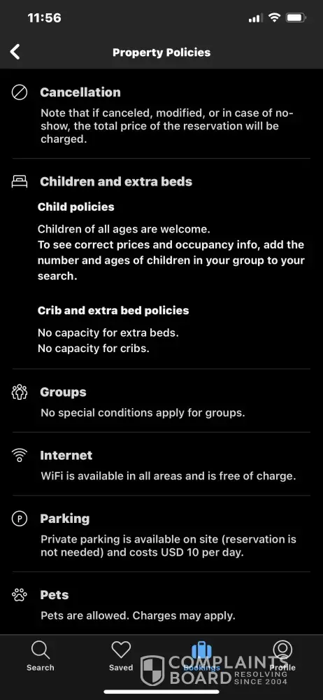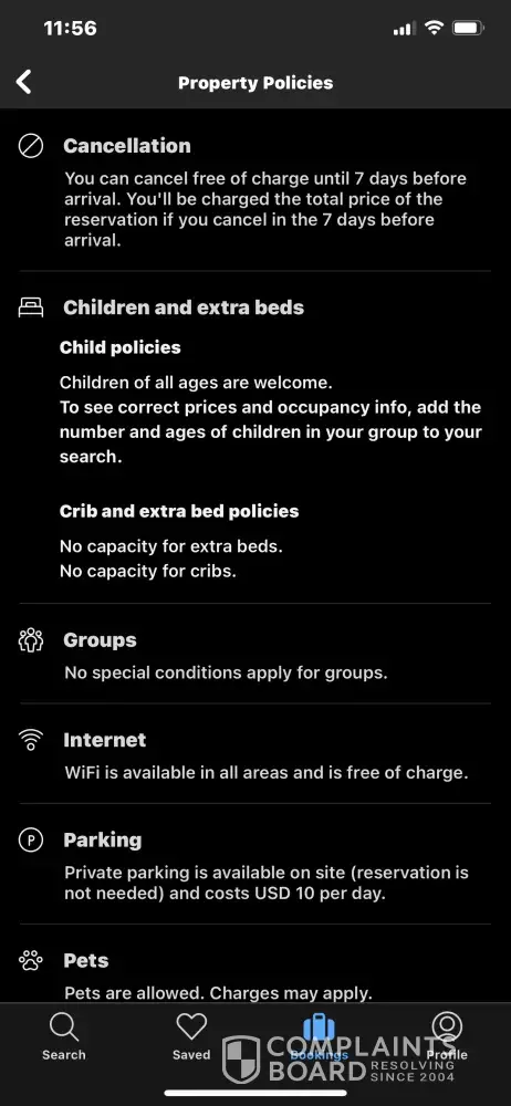 No refund despite booking.com policy