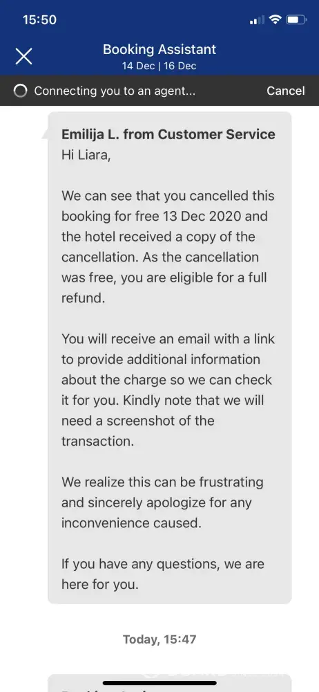 I am going to forward all of this information over to them by message as well to be sure they follow up with us once the refund is processed."