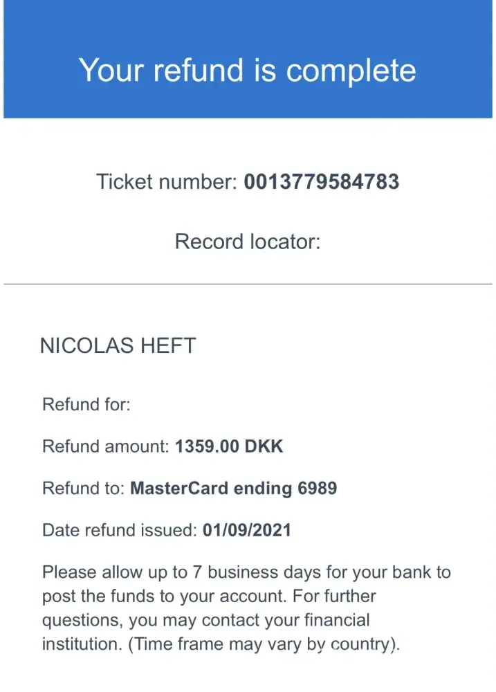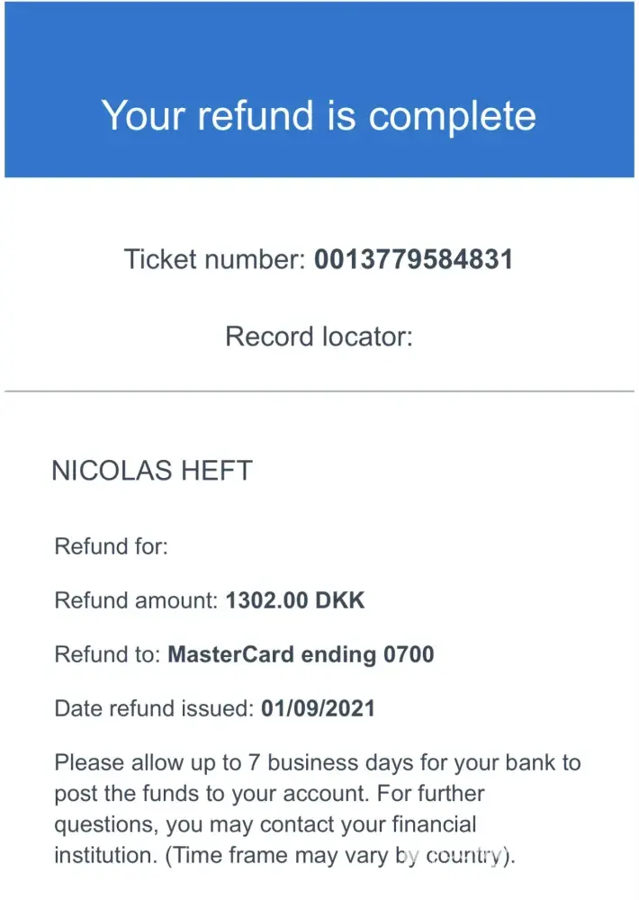 Desired outcome: I want my money back since American Airlines has paid back Booking.com