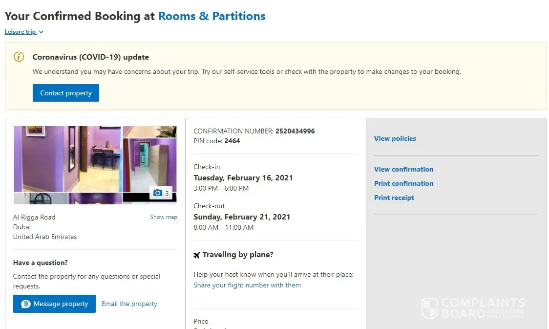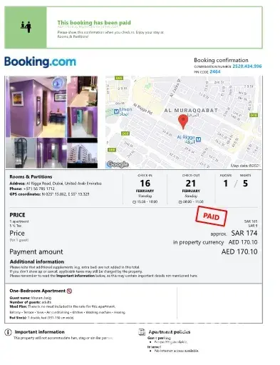 Booking.com When I reached here dubai after payment online done no getting phone and location don't exists dubai