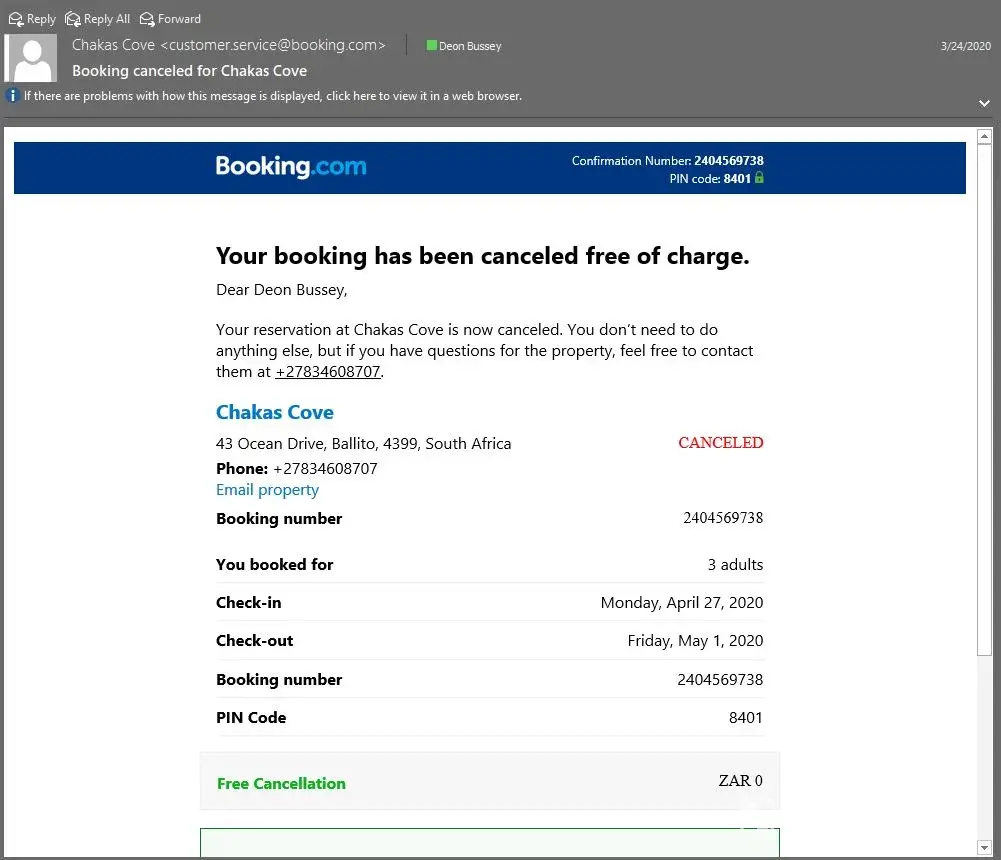 I booked on the 21st Oct 2019 5 hotels in Canada with Booking.com for a trip in September 2020.