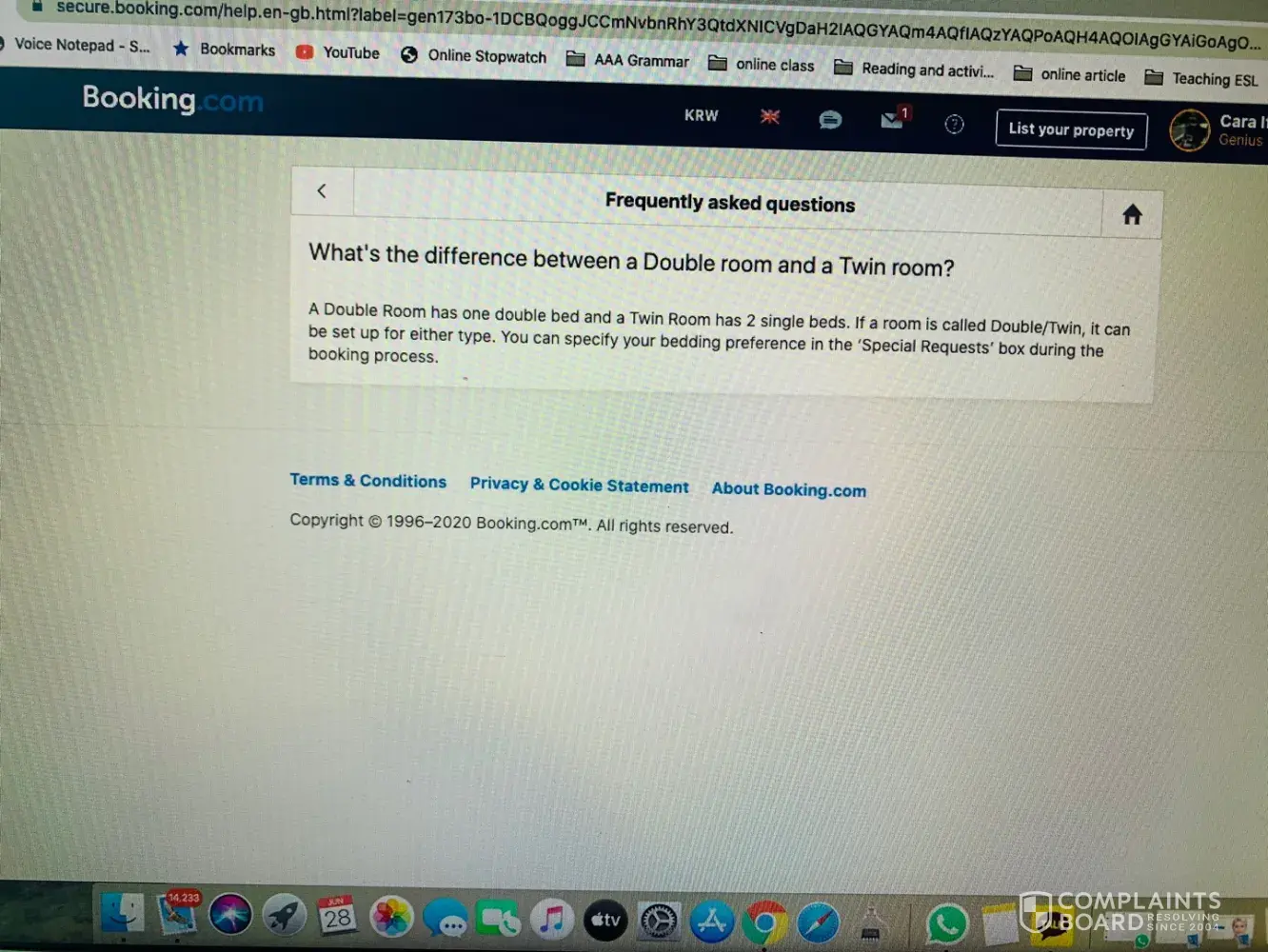 However apart from my personal opinion as a supplier to Booking.com my complaint is best described by the attached information.