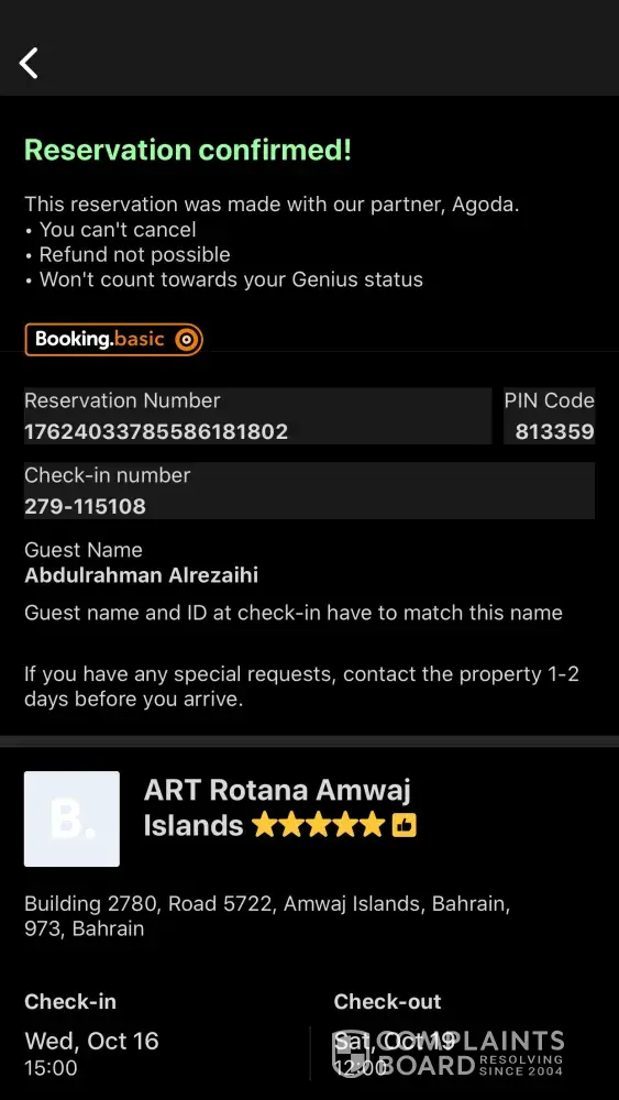 My name is Abdulrahaman Alrezaihi. I have confirmed reservations via Booking on 11th October.