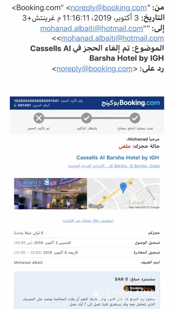 My friend booked a hotel in Dubai through your http://Booking.com website using my credit card on October 03, 2019. After a few hours the website canceled his reservation and didn't not refund my money back. Please advise how can I return my money back?!