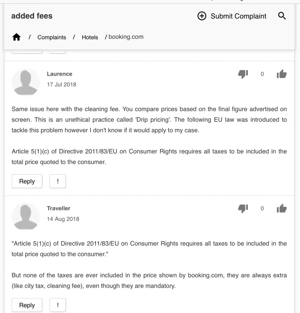 Article 5(1)(c) of Directive 2011/83/EU on Consumer Rights requires all taxes to be included in the total price quoted to the consumer. The cleaning fee was completely hidden at the time of reservation, AND THIS IS INTENTIONAL, ON THE PART OF BOOKING.COM. this is fraudulent and constitutes a bad-faith business practice. The internet is loaded full of complaints about Booking.com for doing this, and I will never use their service in the future.