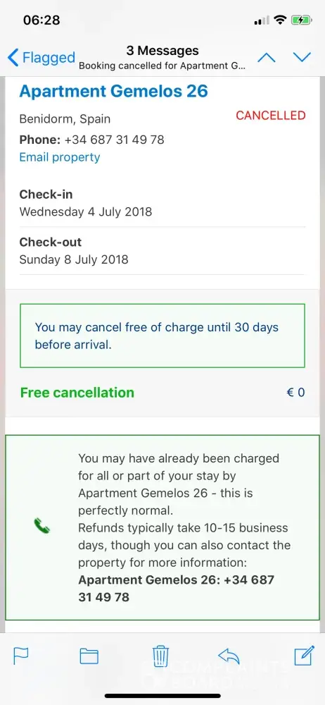 Booking.com refund from free cancellation