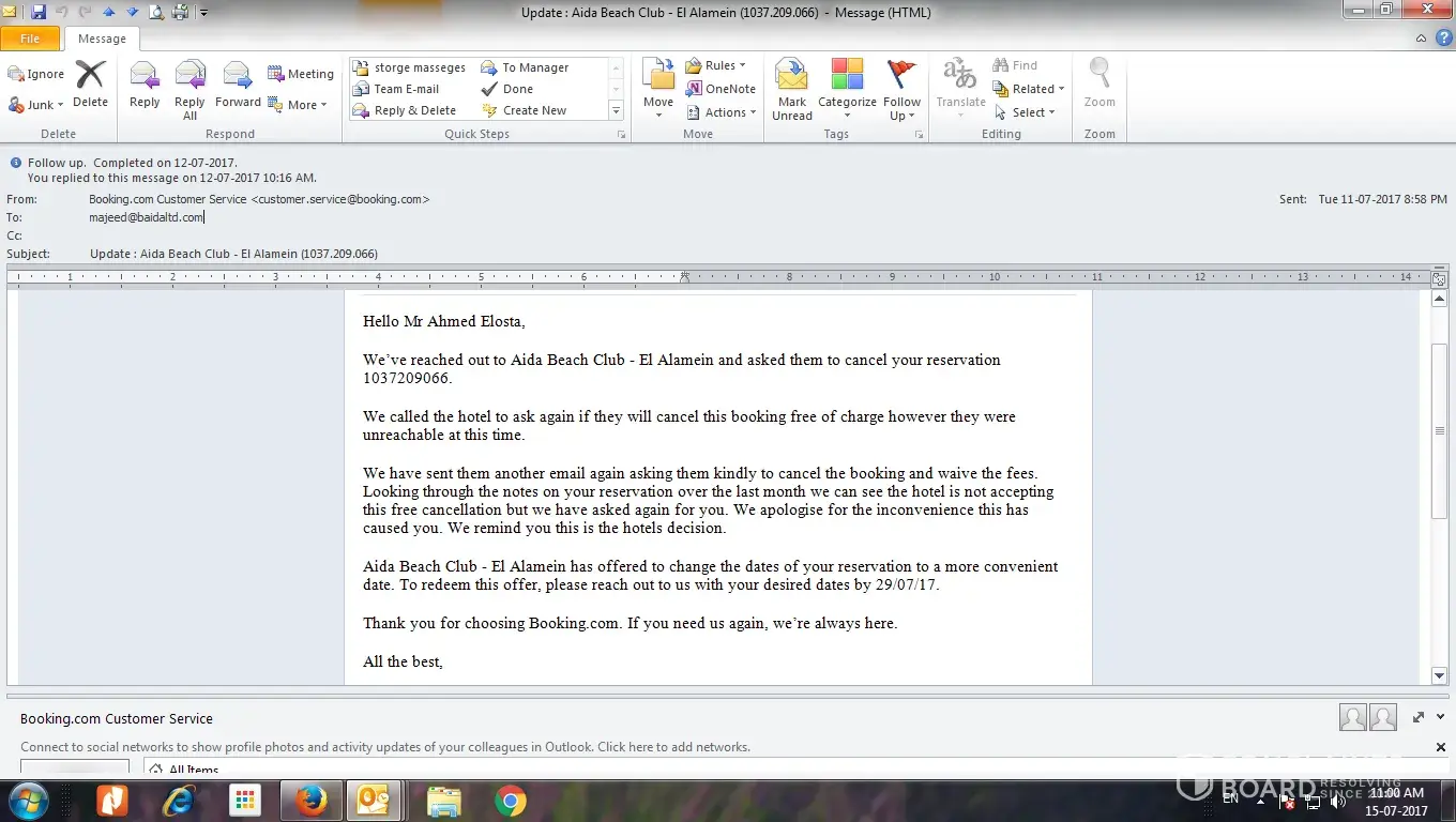 I had booked 02 rooms at the Bodrum Oscar Hotel on July 06, 2017 at 11.11 am( Pakistan Standard time) with free cancellation till July 10, 2017. I cancelled my booking immediately after 08 minutes as I got a better option on Booking.com.