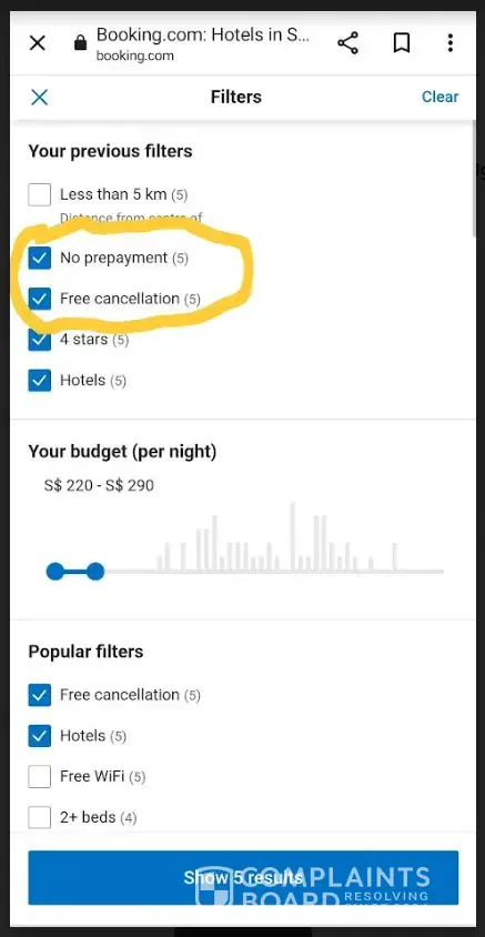 I set the filters with no prepayment and free cancellation, but I lost about C$250 when I cancelled the reservations.