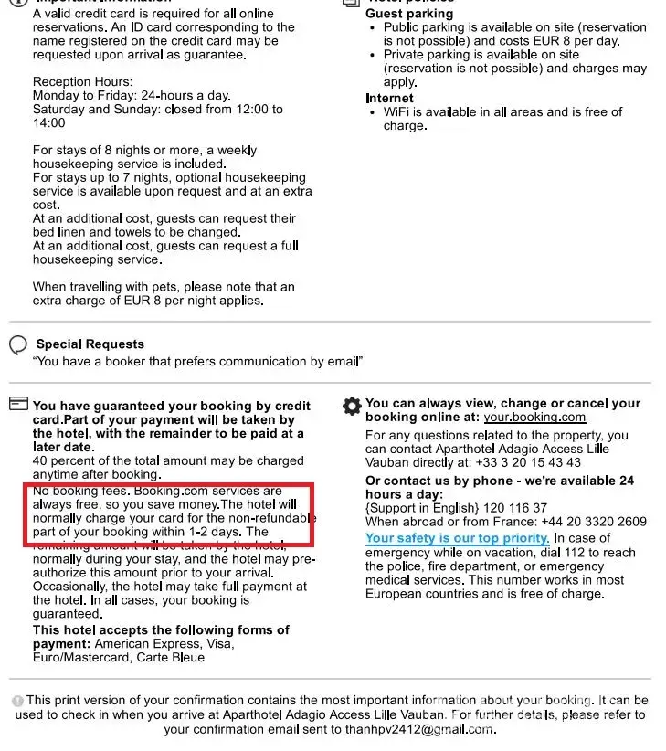 And actually I only knew it today after the bank notification let me know about this charge, then I read again the booking confirmation and I found the small row as picture No.2 mention. It's quite same the case of Microsoft ask people to update Window 10 by change small part in recommendation.