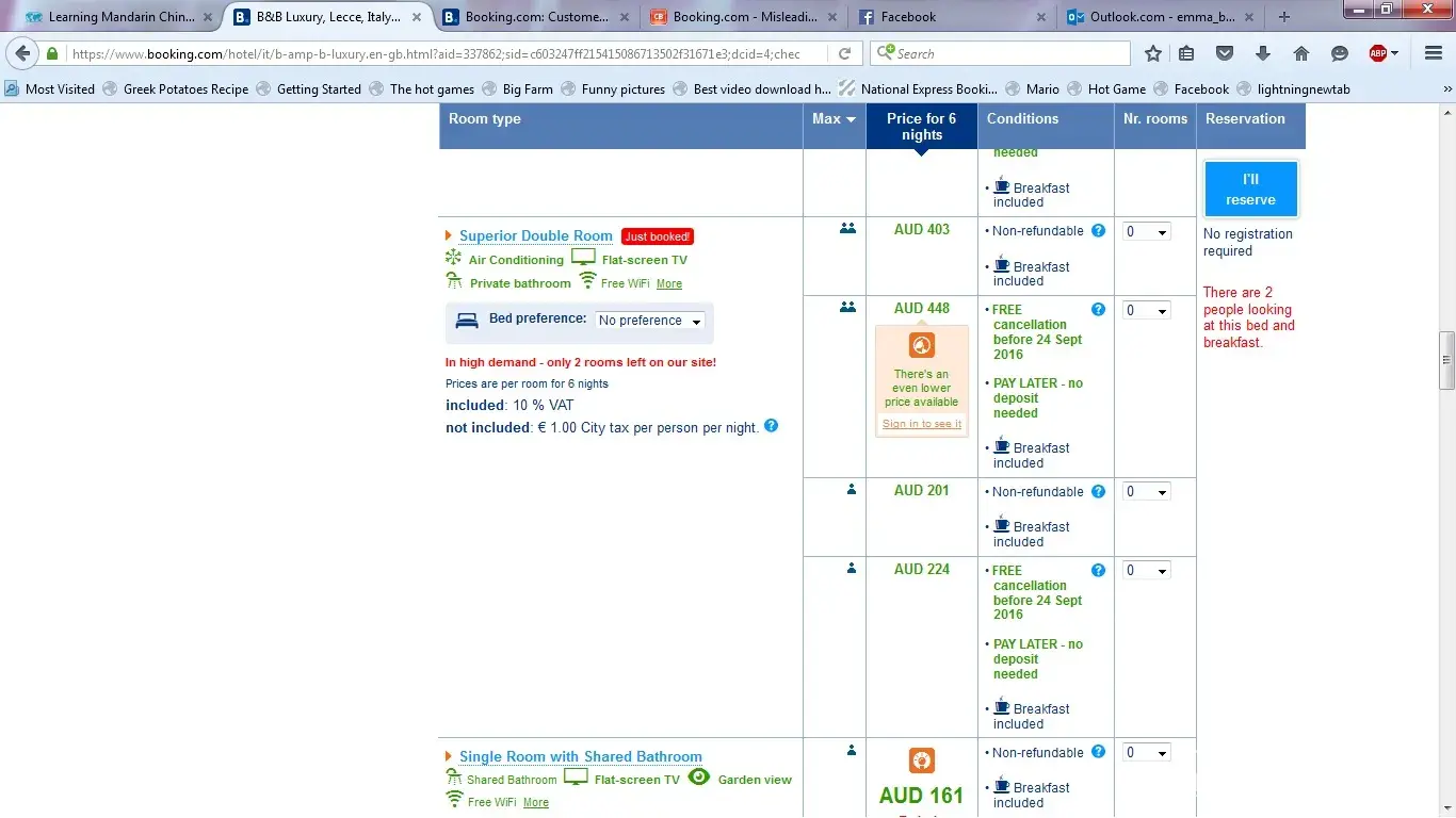 I booked accommodation through Booking.com for Cape Town on Friday 4th March 2016, costing me £620. Soon after booking, I realised the same accommodation over the same dates was £575 on Expedia. Booking.com only had refundable bookings available so luckily I had booked this and it fell under their "best price guaranteed" rules. So, I called immediately after the booking and told them I would like the difference refunded or I would just cancel and book with Expedia. The person I spoke to in customer services, named Gerardus, said he would send me an email and I must reply with the details. He assured me that it would be dealt with straight away if I did this. So, I sent the link to the Expedia page as he requested with all other details. I also decided to take screen shots of the deal, just in case the accommodation became unavailable. I also sent this information via booking.com's online customer services form in case Gerardus was slow in dealing with the issue. No response. I left it over the weekend, assuming the department that deals with it does not work on a weekend and called first thing this morning (Monday 7th). First of all, it was lucky I took the screen shots (which they had not asked for), as the accommodation was sold out on Expedia now and they wouldn't have looked into it at all. However, they still would not refund the difference because it was a non-refundable booking that was for sale on Expedia, i.e. a different product. I explained that I didn't need a refundable ticket, as I had explained to Gerardus on Friday, but that's all that was available on Booking.com and if he had looked into this or advised me sooner, then I could have cancelled with Booking.com and booked with Expedia. Unfortunately, booking.com would not budge on this and told me it did not meet their criteria, forcing me to keep the more expensive accommodation with them since Expedia's accommodation was no longer for sale. It is perhaps my fault for not looking for cheaper deals elsewhere, however, I am a "Genius" member at Booking.com so accommodation has always been cheaper there in the past and I find the website easy to use. However, their "Best Price Guaranteed" is a joke and I'd be interested to see how many people successfully claim on this. What good is it if they don't look into your claim until days and days later when the other website's deal no longer exists. I did went beyond everything they required to claim this money back and due to their slow processing it has cost me over £45. It's not a lot but it's hugely frustrating and I'm disappointed that having been so loyal to Booking.com they don't seem to value my future business. I asked for a complaint's department but apparently they don't have one. Is that even legal? I can give my booking reference number and screen shots on request but I'm a little reluctant to post them on a public website before the trip.