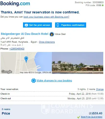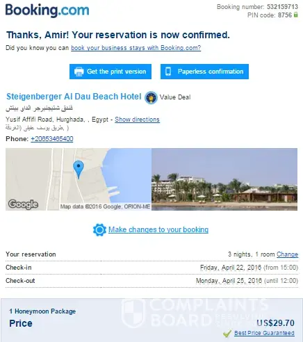 I then forwarded the email to Booking.com. No one at Booking.com contacted me.