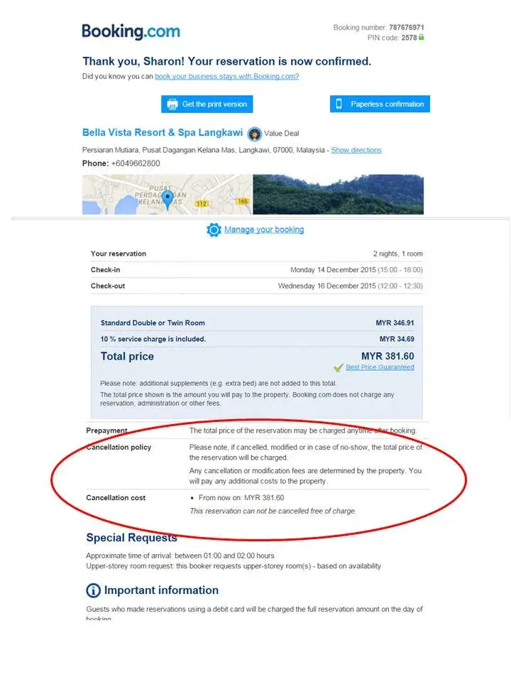 Booking.com, I will never use it again, and of course, I'll make sure my friends won't use it again from now on.