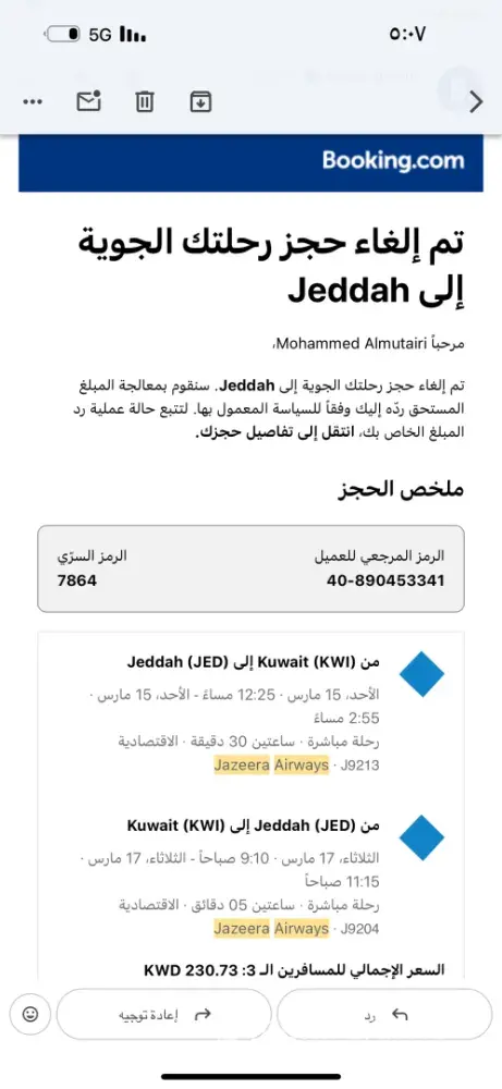 Booking.com review: My refund has not been processed yet after my flight was canceled.