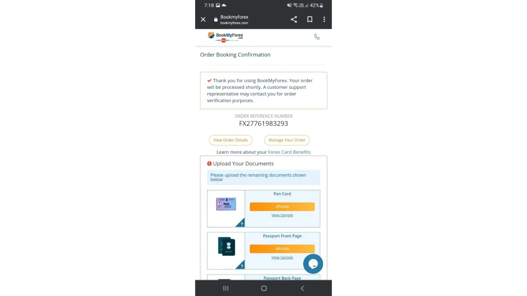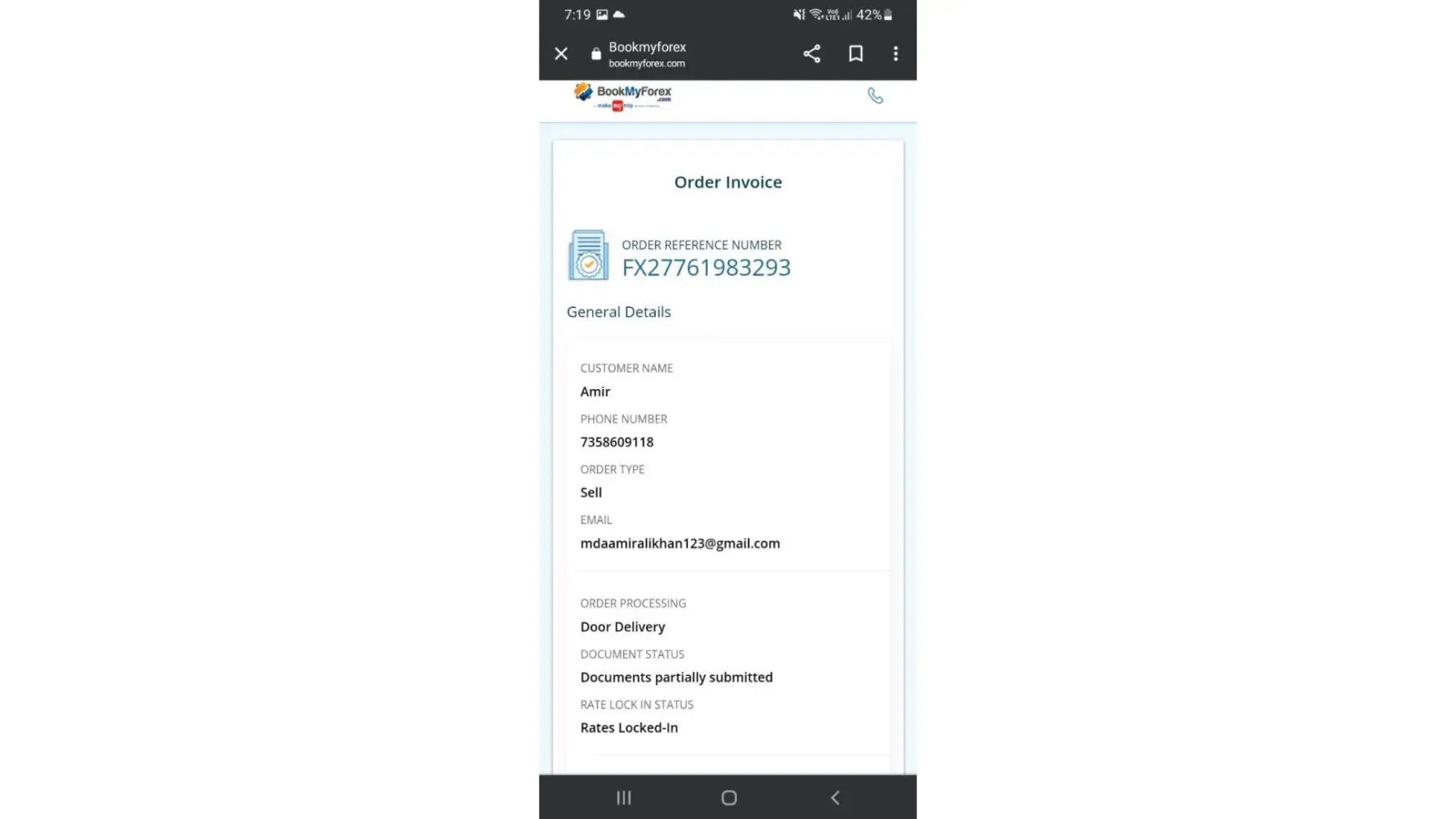 The Forex card for order no FX386229279424 has been cancelled due to non-availability of delivery service at my location. The rate lock in amount of Rs.5466 is still not refunded. Could you please refund the amount ASAP.
