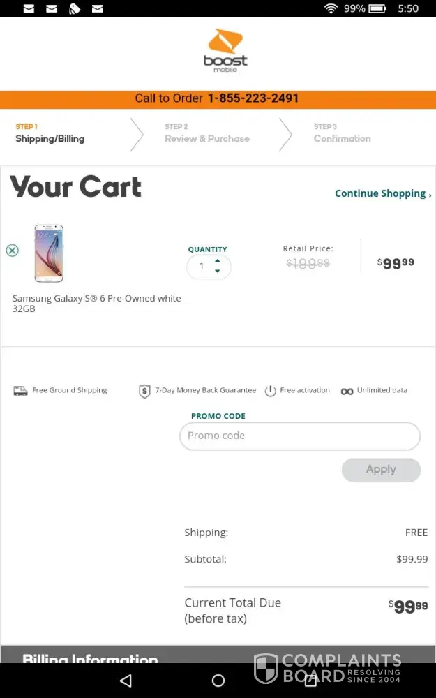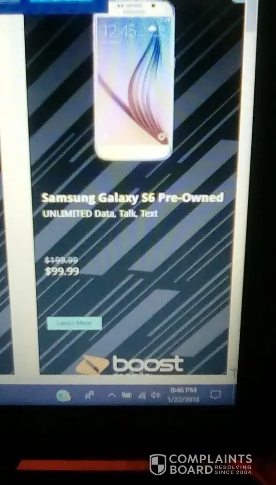 On January 19, 2018 My son and I went online to purchase a phone from Boost Mobile, the price that was advertised was $99.00 but when we went to check out the online cart would not let us checkout so we contacted the company to find out what was wrong and we were told that the price was incorrect and the sale ended on January 18, 2018. So we ended up paying $149.99 for the Pre-Owned Samsung Galaxy S6. then on January 22, 2018 we purchased the phone but a few days later and until now the phone is still being advertised for $99.00.