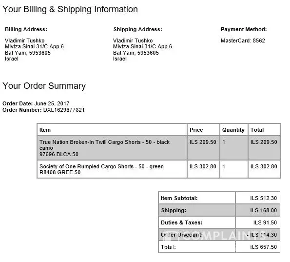 We placed an order for 2 ladies shirts with Tommy Bahama back in August we then heard from Borderfree with the 1st Order number ending 158 dated 11th August, all they told us was they have taken money from our paypal account,
