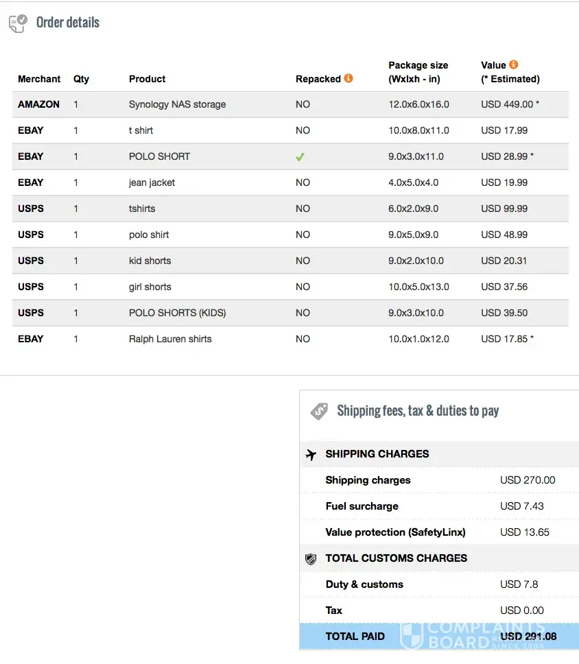 Once you get your orders delivered to them, they will hold your items "hostage", and the prices get a lot higher than you expected in the first place. Excessive charges, no repack and hidden VAT.