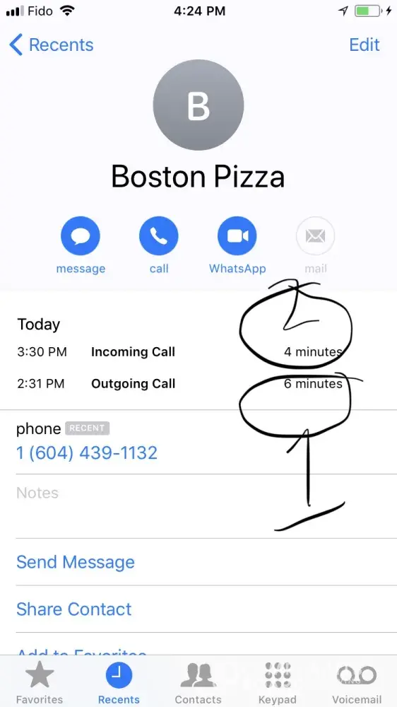 I made an order for delivery to the local Boston pizza in Dawson creek bc Canada