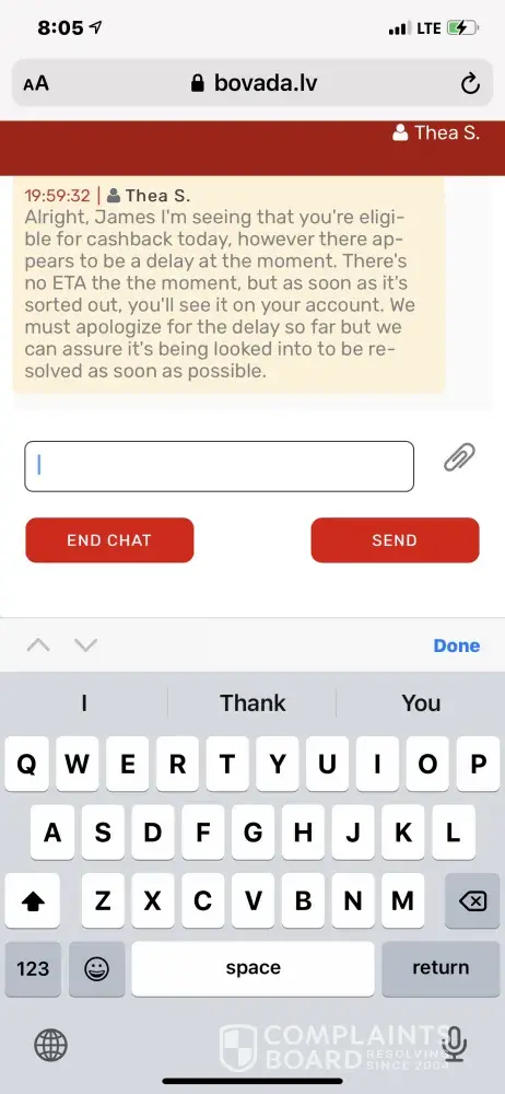 Bovada completely facilitates scammers to steal your money using match pay you send them the money they don't send you the credits and then match pay does nothing about it whatsoever in fact they try to tell me that it's cash apps responsibility when how in the hell do you figure that it's completely on the other person that received the money and didn't send the credits and match pay the business itself it's completely on them [censored]ing losers thieves